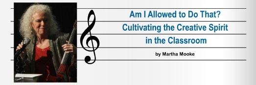 The Arizona Music Educators Association features a new article by Martha Mooke "Am I Allowed to Do That? Cultivating the Creative Spirit in the Classroom" in their Spring 2015 issue. The article addresses tapping into the creative muse that each student unknowingly has inside of them, and encouraging young players to venture beyond their respective comfort zones. To read the entire article, visit en.calameo.com/read/001258465fcddf8516157